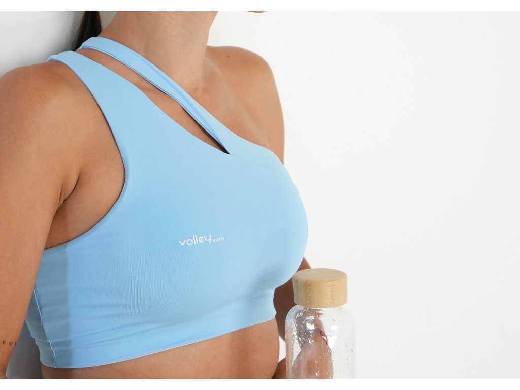 Športová podprsenka One Shoulder Bra v svetlej baby modrej farbe je navrhnutá pre maximálnu podporu aj pri najnáročnejších športových aktivitách.