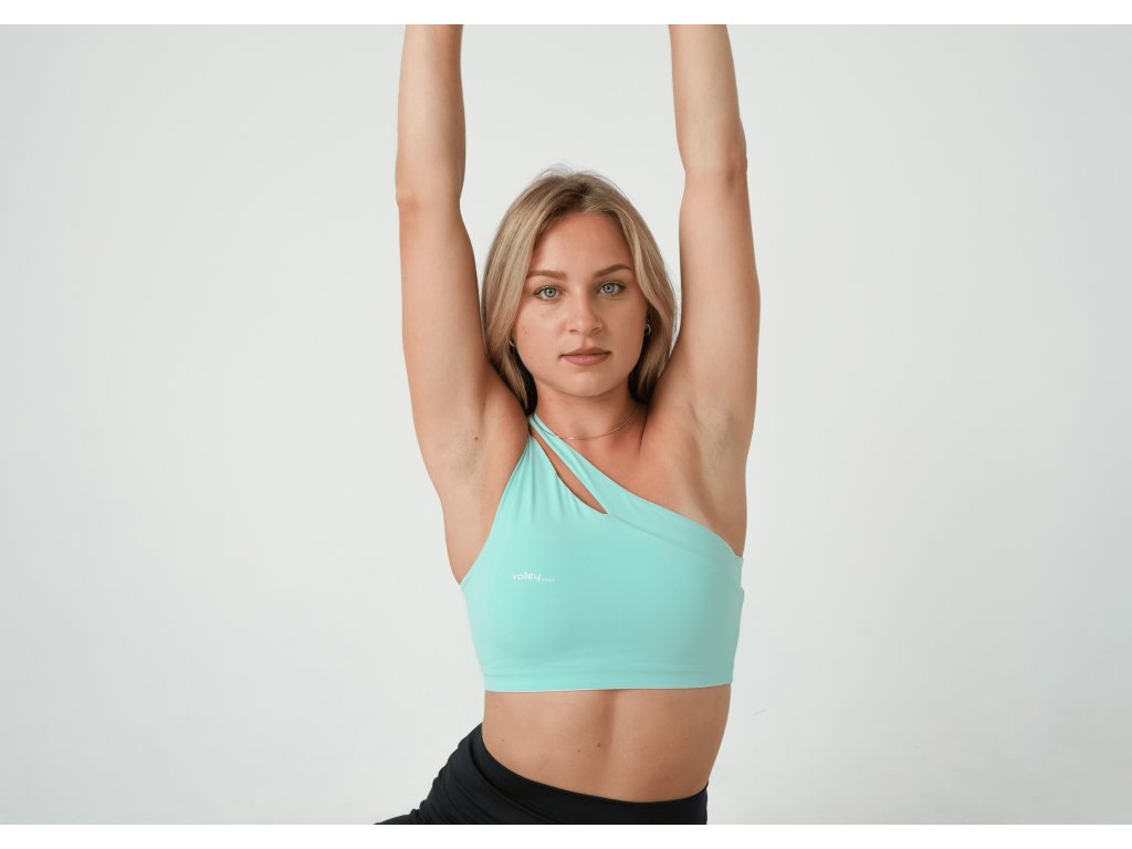 Športová podprsenka One Shoulder Bra v jemnej mentolkovej farbe je navrhnutá pre maximálnu podporu aj pri najnáročnejších športových aktivitách.